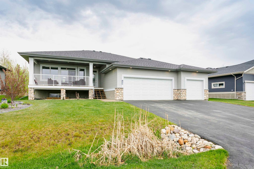 Welcome to this exceptional lake-access bungalow. This beautifully crafted home offers the best of both comfort and convenience, with a host of premium amenities including private beach access, a community pool, fitness center, clubhouse, marina, scenic trails, and more. Step inside to a bright and inviting open-concept layout, featuring a cozy fireplace, granite countertops, main floor laundry, and central air conditioning. The spacious primary suite is a true retreat, complete with a luxurious 5-piece ensuite and a generous walk-in closet. Enjoy peaceful mornings on the charming covered front porch and unwind in the evening as you take in stunning sunsets. The private backyard offers ample space for relaxation or entertaining, and the home is ideally situated on one of the largest lots in the community. Plus, you'll love the oversized heated TRIPLE garage — perfect for vehicles, storage, or a workshop. Don’t miss your chance to own a slice of lake life with all the extras — this one has it all!